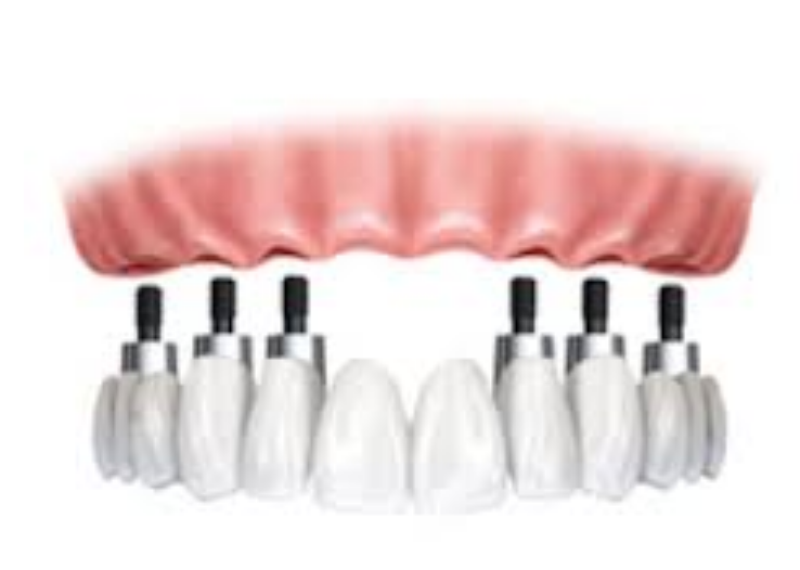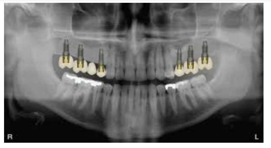 Dans certaines situations où l’os vient à manquer dans les secteurs postérieurs, on peut à l’aide de 6 implants placés dans le secteur antérieur remplacés les dents jusqu’aux premières molaires sans effectuer de greffes (sinus lift).