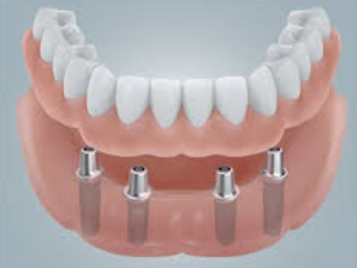 Le même procédé est possible à la mandibule avec 6 ou 4 implants (all-on-four).